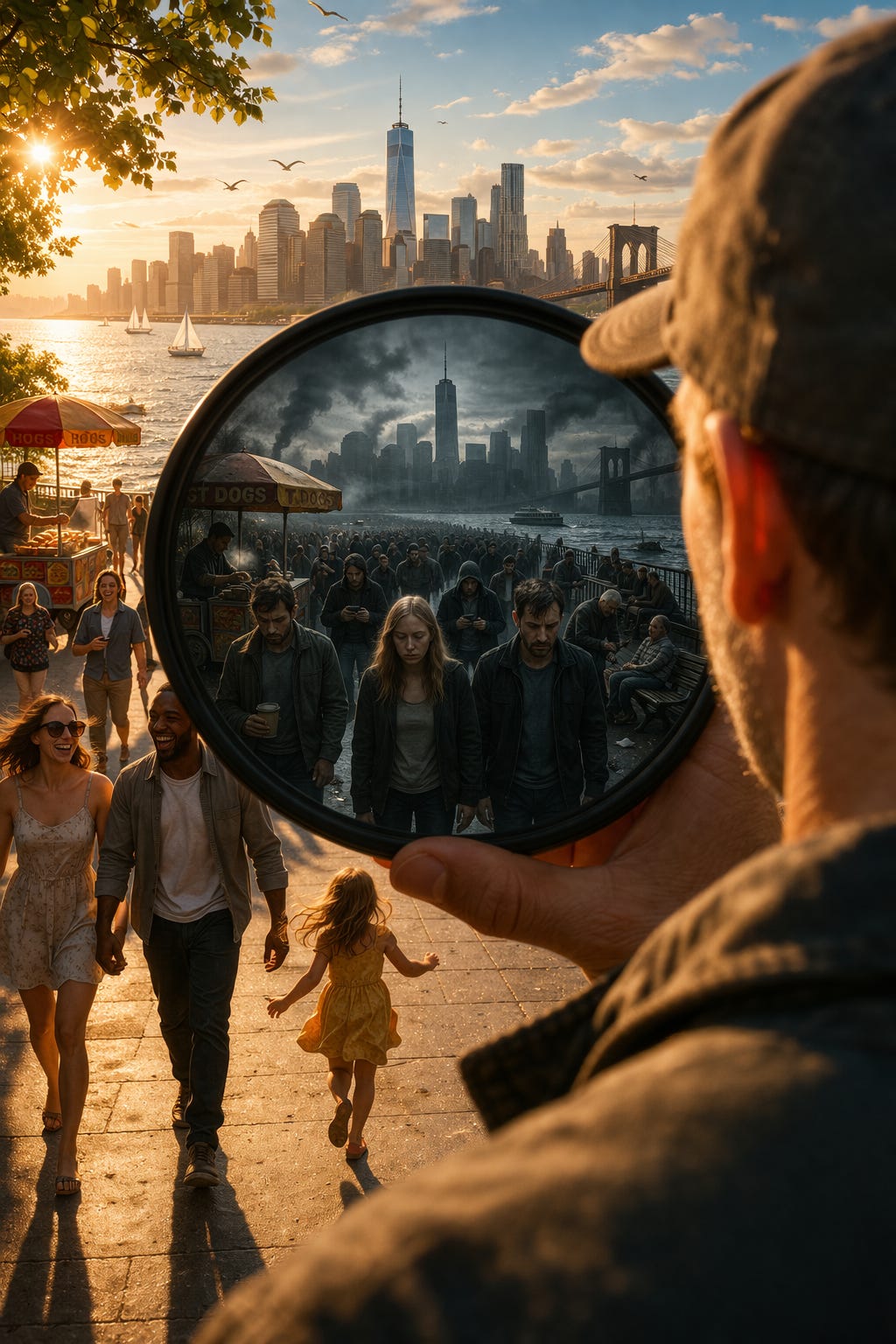 Though this is a luxury. The person in genuine darkness, in famine, in war, in suffering that overwhelms everything else, doesn’t get to point the instrument anywhere. Survival points it for them. Most of us reading this are that fortunate, even when it feels otherwise. Acknowledging that honestly is the first move that matters. For those of us who have that room, the only question is whether we set the filter or let it be set for us.